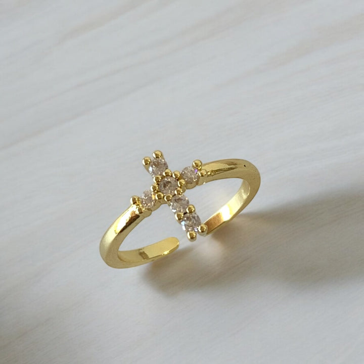 Una pequeña cruz formada por brillitos se convierte en el detalle sutil pero significativo de este anillo 🙏💎. Perfecto para uso diario o como símbolo espiritual