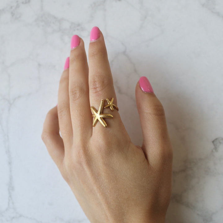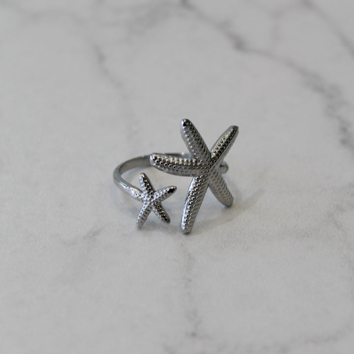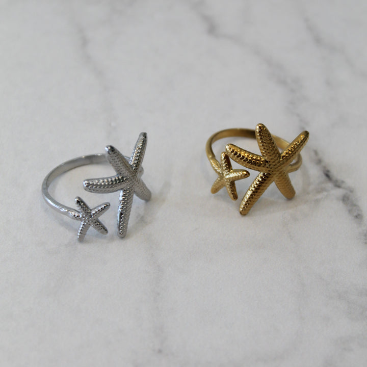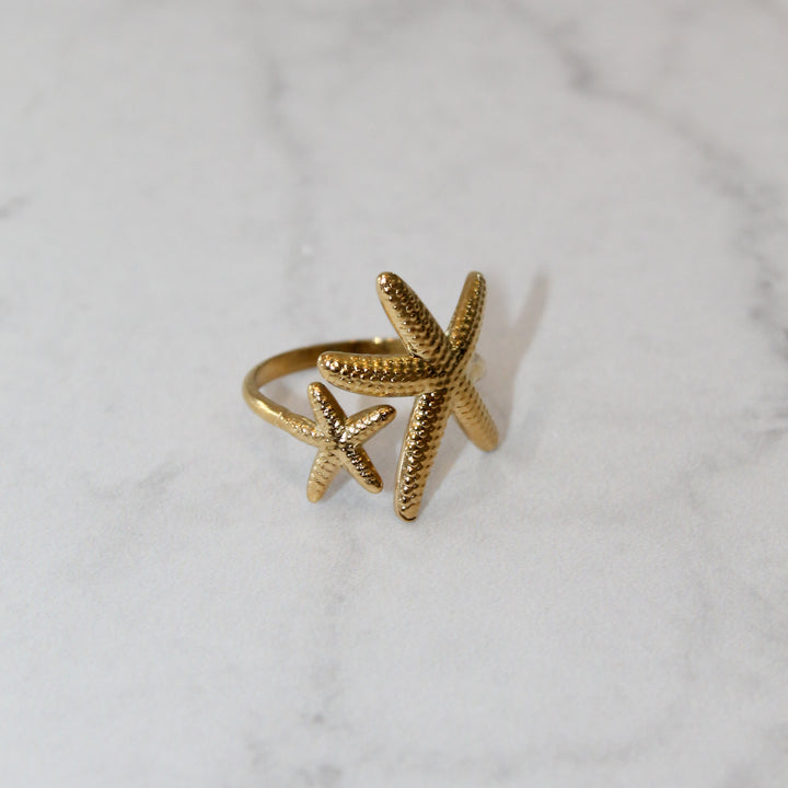 Dos estrellas de mar se entrelazan en este anillo que evoca la frescura del océano 🌟