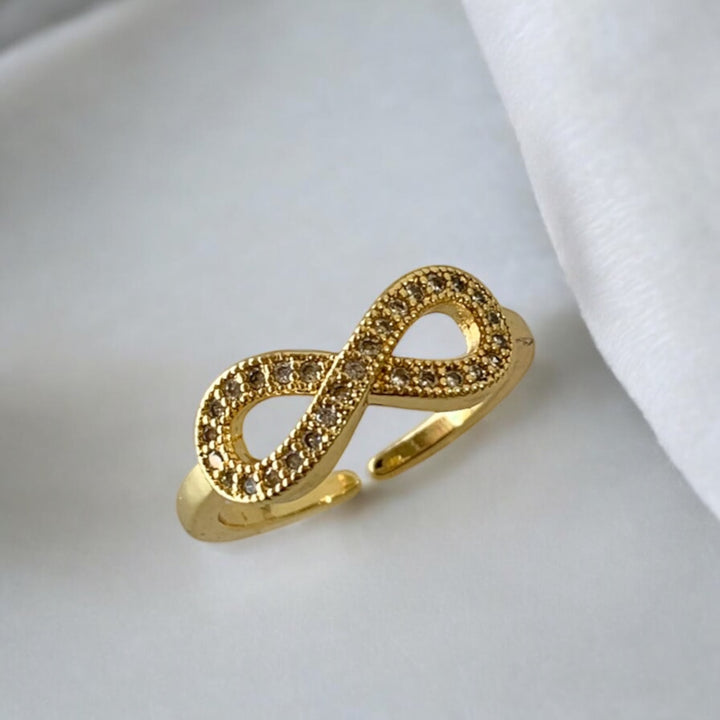Elegante y brillante, este anillo infinito con zirconias resalta cualquier look ✨ Un clásico moderno para llevar todos los días
