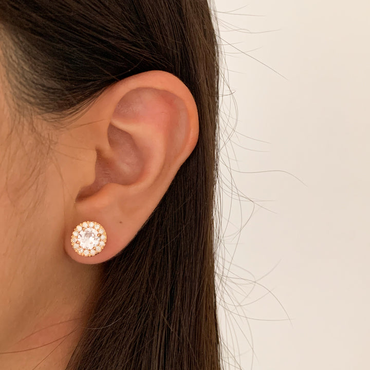 Un esencial para las que aman lo discreto pero brillante. Su diseño redondo con centro brillante lo hace perfecto para usar a diario sin perder el toque chic. ✨