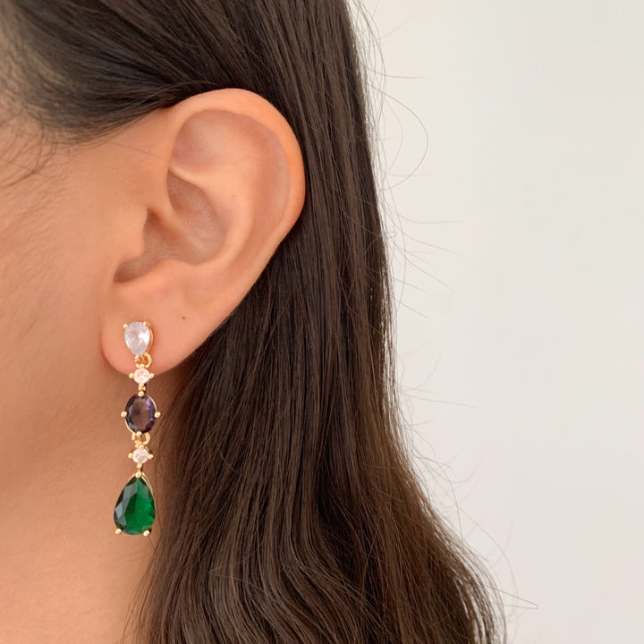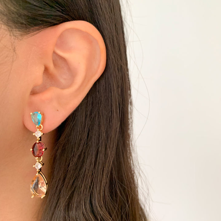 Los aretes Beatriz son el accesorio perfecto para un look mas formal, desde una cena hasta una boda, la combinación unica de colores es super llamativa