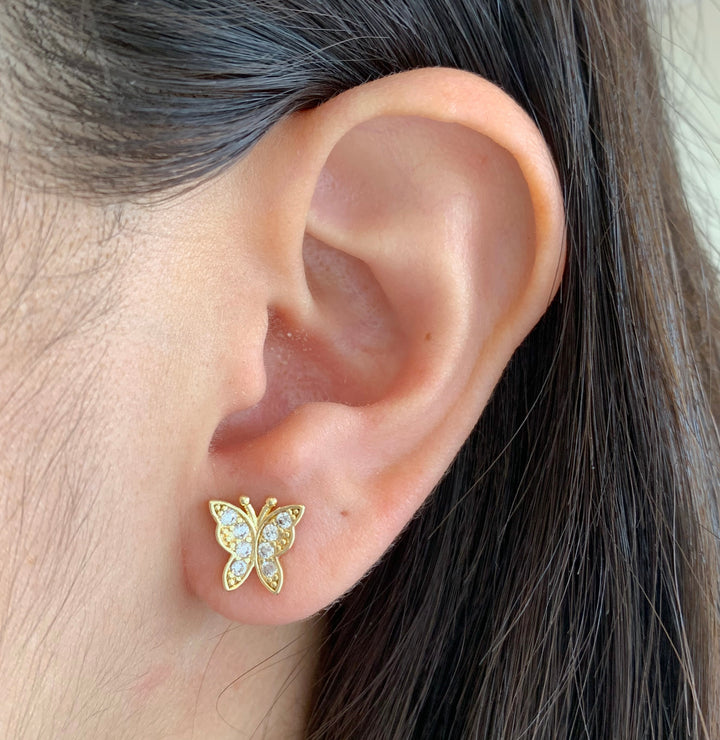 Aretes mariposas con brillos dorados
