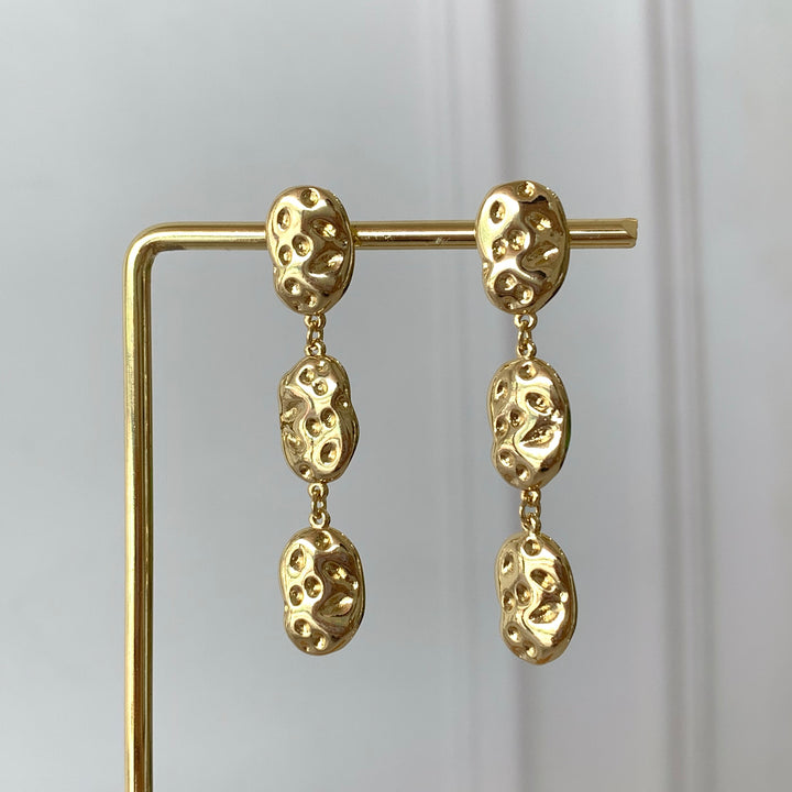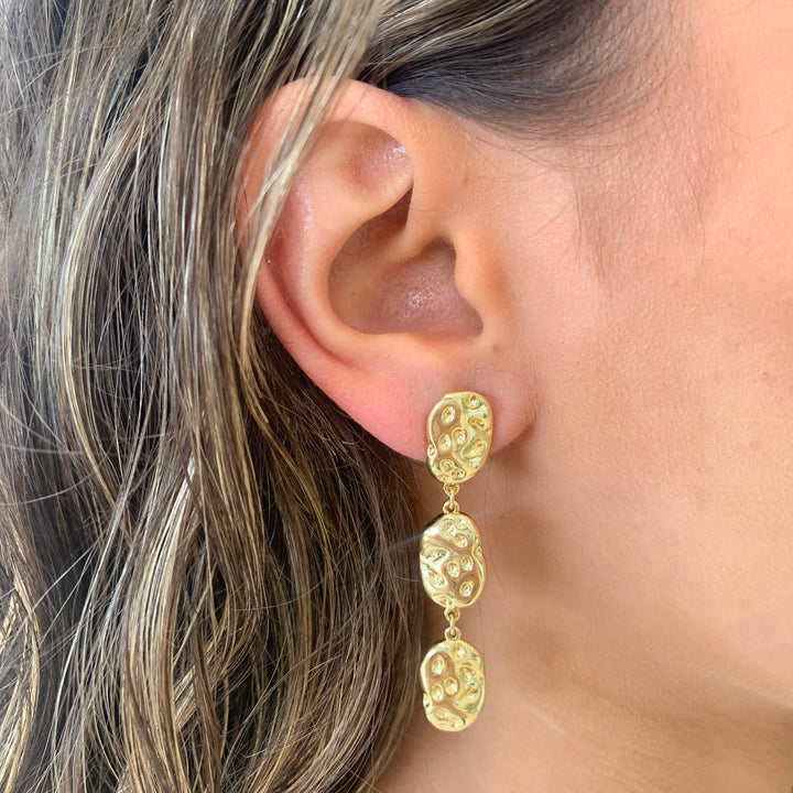 Aretes tres óvalos martillados