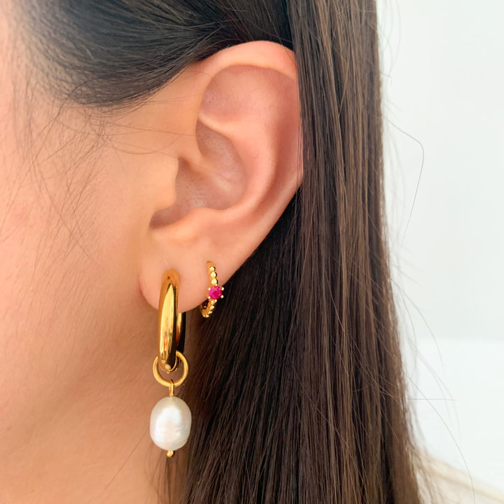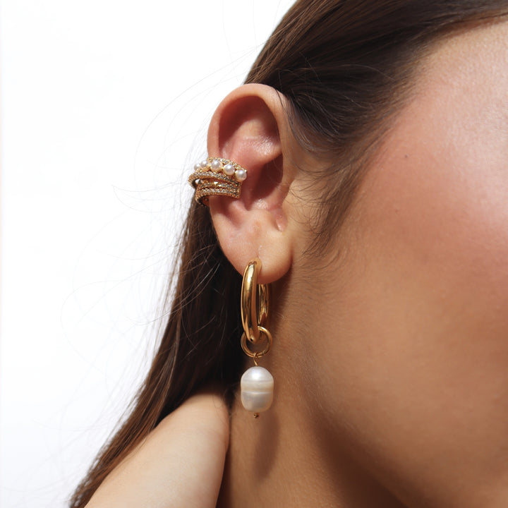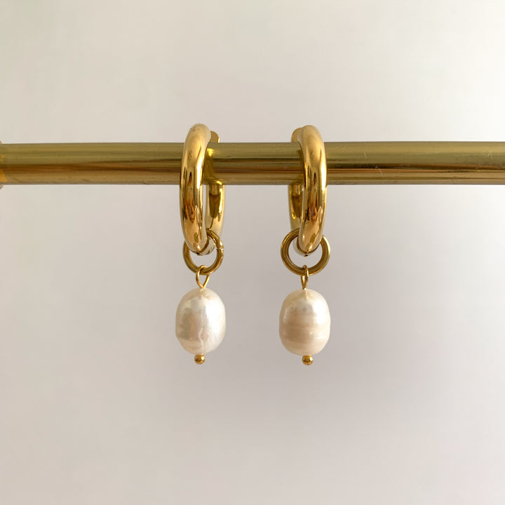 Material: Acero Inoxidable con Chapa de Oro 18K. Perla de Rio