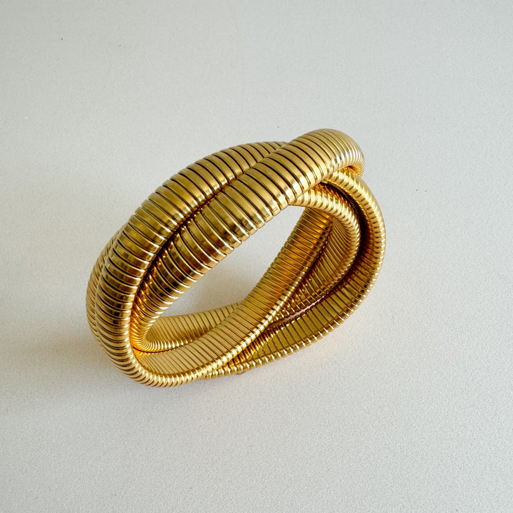 Impactante y statement 💥. Grande, metálico y con textura elegante. Este brazalete es para esas ocasiones en que quieres que tu accesorio lo diga TODO. Disponible en dorado y plateado. ¿Estás lista para ser el centro de atención? 💖✨