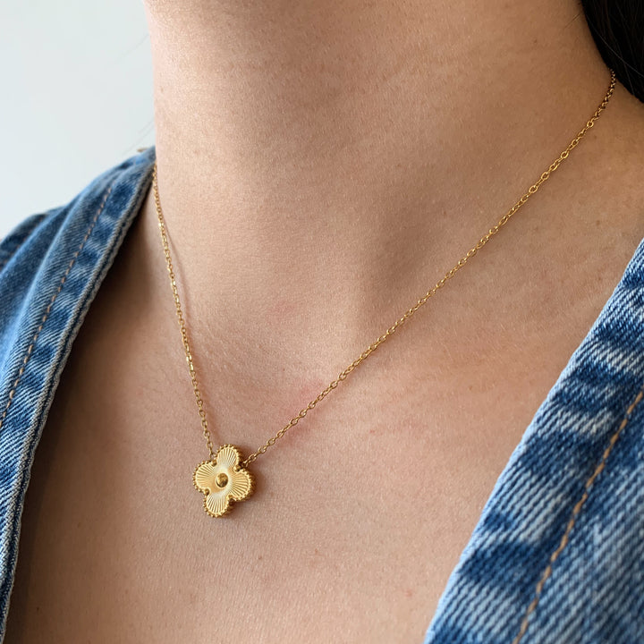 Sencillo y encantador ✨ El trébol dorado con textura sutil y brillo suave es de esos detalles que elevan cualquier look, dándole un toque romántico y con buena energía🌸