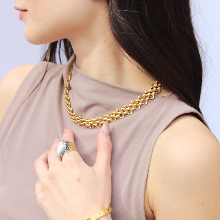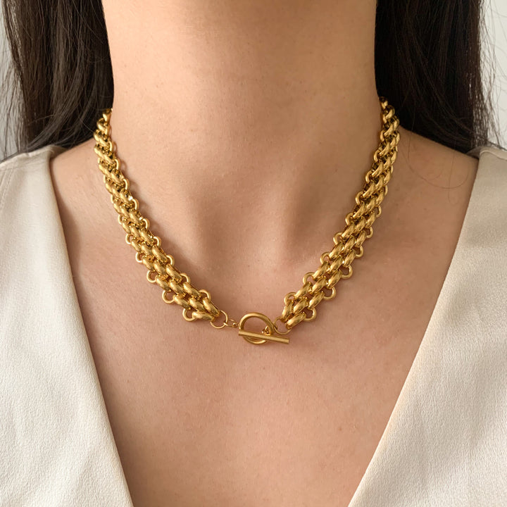 Statement total 💥 Esta cadena gruesa en dorado es perfecta para elevar un look básico o para combinar con otras piezas más delicadas. Bold pero versátil.
