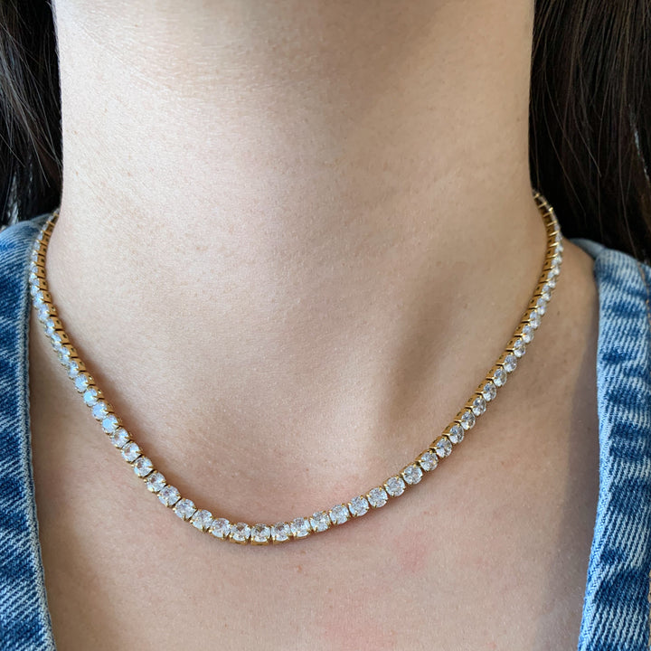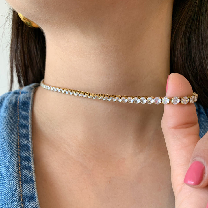 Brilla sin esfuerzo ✨ Esta gargantilla tipo tennis tiene el tamaño ideal para darle un toque elegante a tu cuello. Úsala sola o combínala con otras cadenas 💫 💖