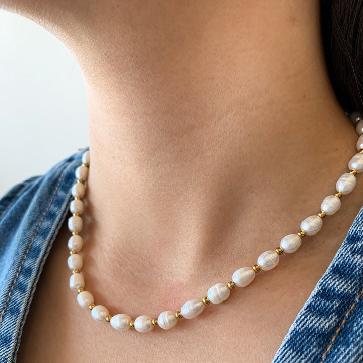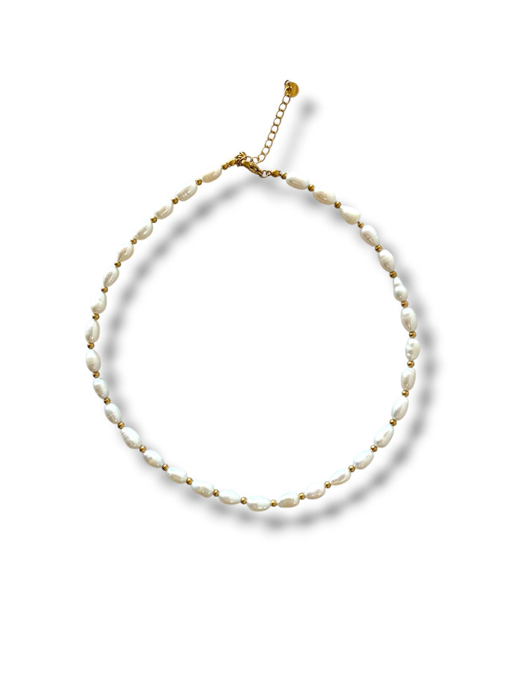 Un clásico que nunca falla 🤍 Esta gargantilla de perlas con forma natural se ve increíble con looks casuales o elegantes. ¡Un must en tu joyero!✨