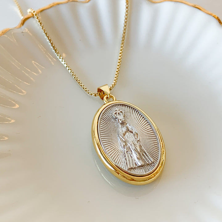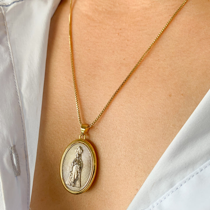 Tradición con un giro moderno. La medalla bicolor de la Virgen de Fátima es ideal para llevar siempre contigo ese toque espiritual con mucho estilo ✨