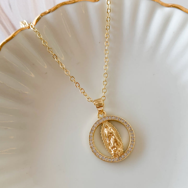 Una joyita espiritual y hermosa ✨ La medalla de la Virgen rodeada de cristales es ideal para llevar tu fe con mucho estilo. Simple, elegante y significativa📿✨