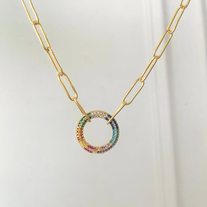 Collar cadena paper clip candado circulo colores