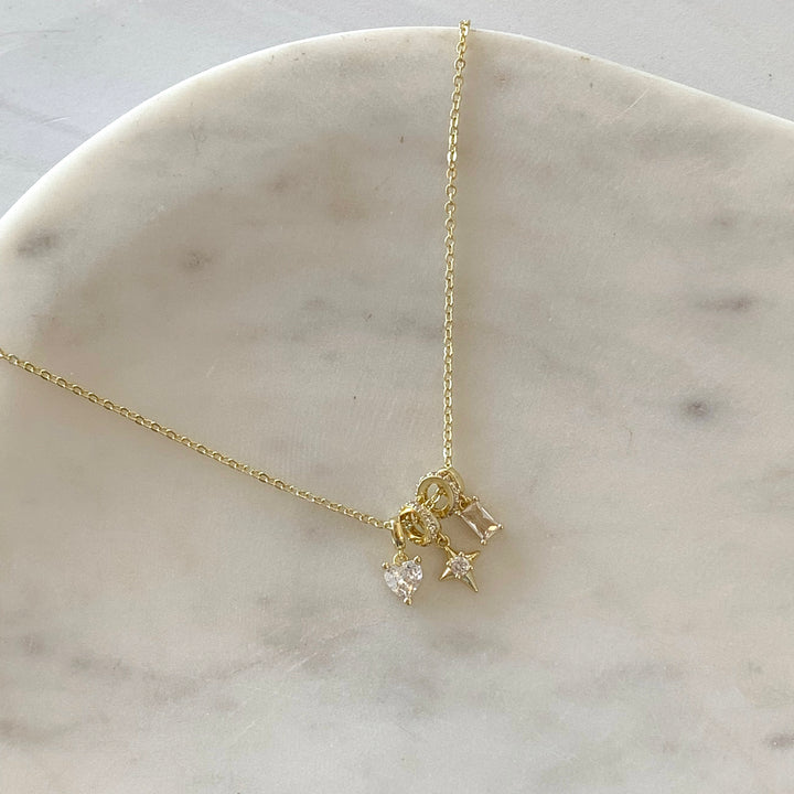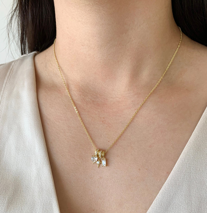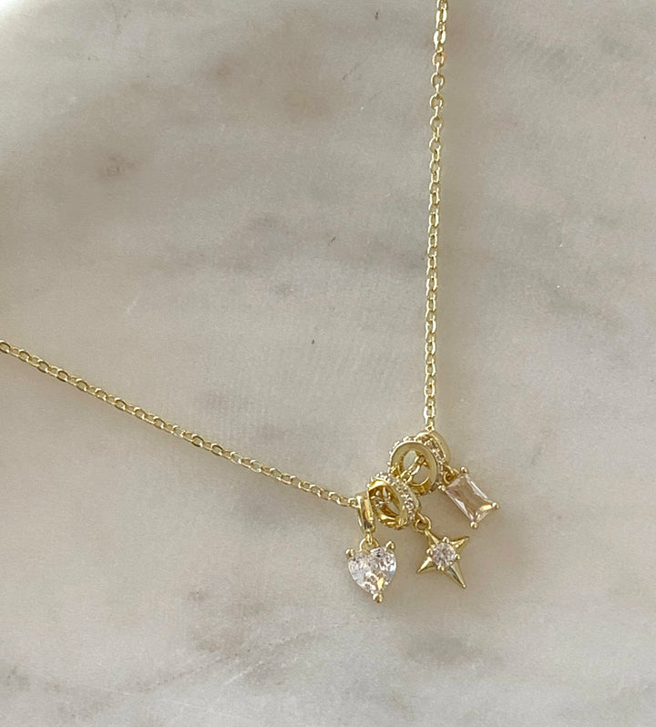 Collar charms corazón, estrella y brillo