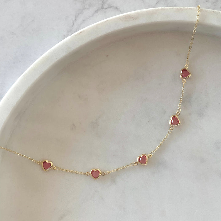 Dulzura en forma de joya. Esta cadenita con varios corazoncitos rosados es ideal para looks románticos y femeninos 💕🍬
