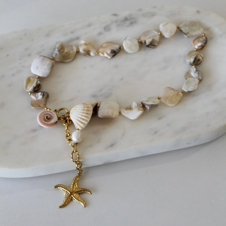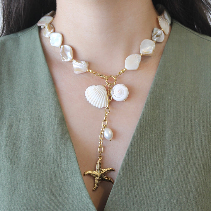 Collar conchas y piedras naturales con estrella de mar