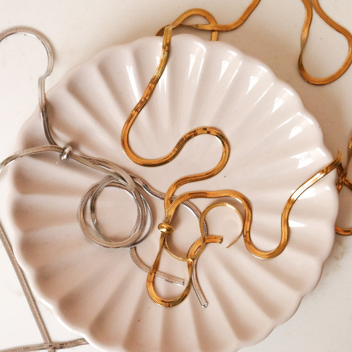 Femenino, elegante y con un twist 💫 Su forma tipo corbatín ajustable hacen que esta pieza se vea moderna, minimalista y sofisticada a la vez.
