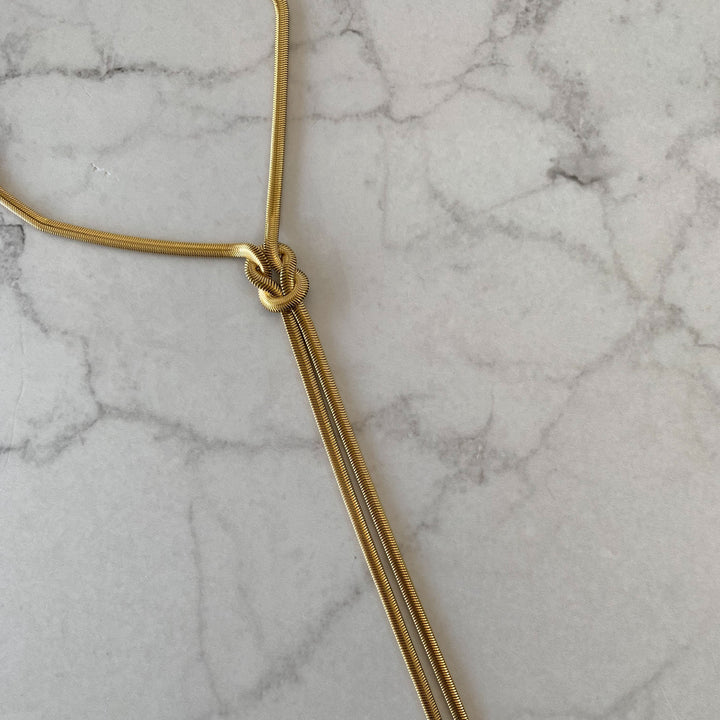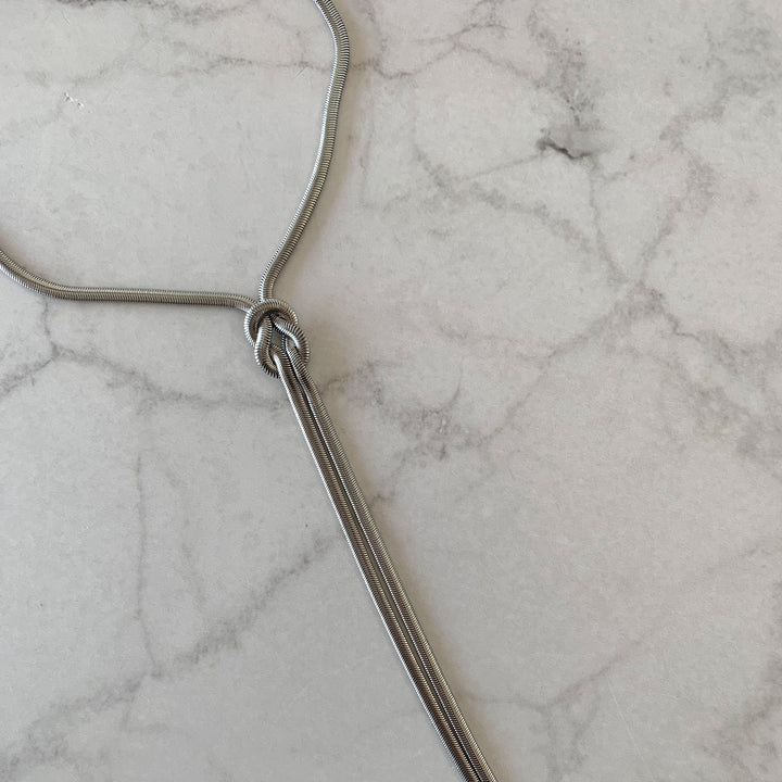 Versatilidad con elegancia. Este collar tipo corbatín con nudo puede llevarse para dar un toque sofisticado y trendy 💫