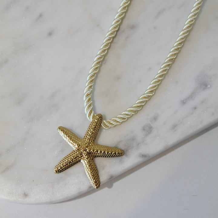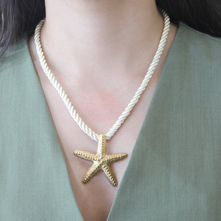 Para amantes del mar con alma fashionista. Esta estrella grande sobre cordón textil es el punto focal perfecto para un outfit fresco ✨🌊
