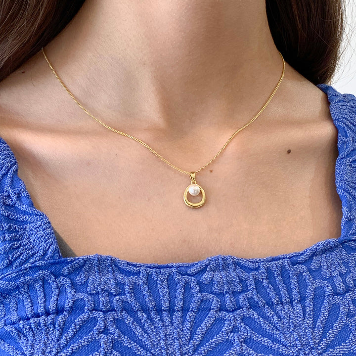 Delicado pero con presencia. El óvalo dorado con perla central es una combinación ganadora si buscas algo elegante sin ser demasiado formal 🥂