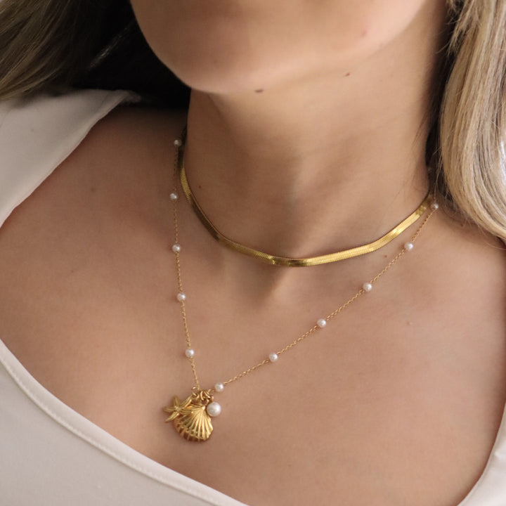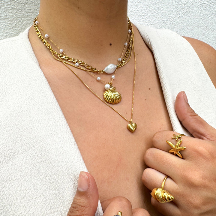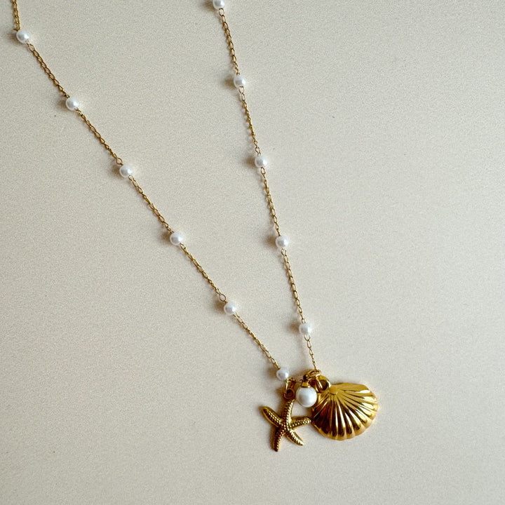 Inspirado en el mar y los días de sol 🐚🌊 Con su conchita dorada y estrella de mar colgante, esta pieza es perfecta para quienes aman los detalles naturales y el look coastal-chic.