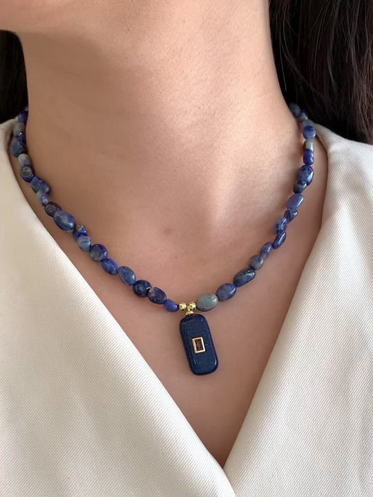 COLLAR PIEDRAS AZULES CON PIEDRA AZUL RECTANGULAR