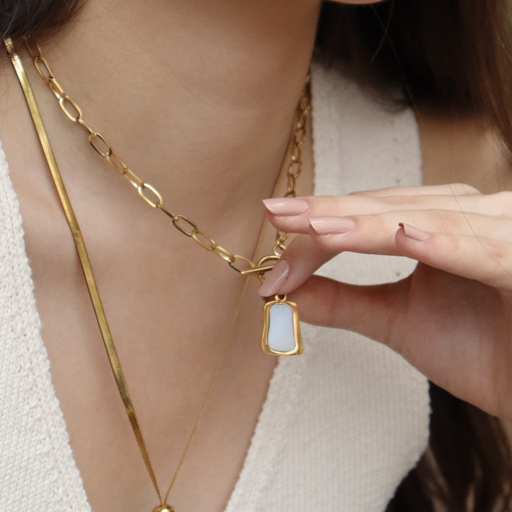 Un clásico con elegancia natural 🌿 La madre perla central enmarcada en dorado brilla sutilmente con la luz. Perfecto para looks sofisticados, limpios y femeninos.