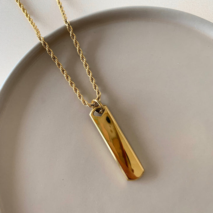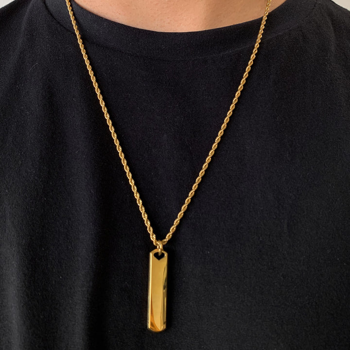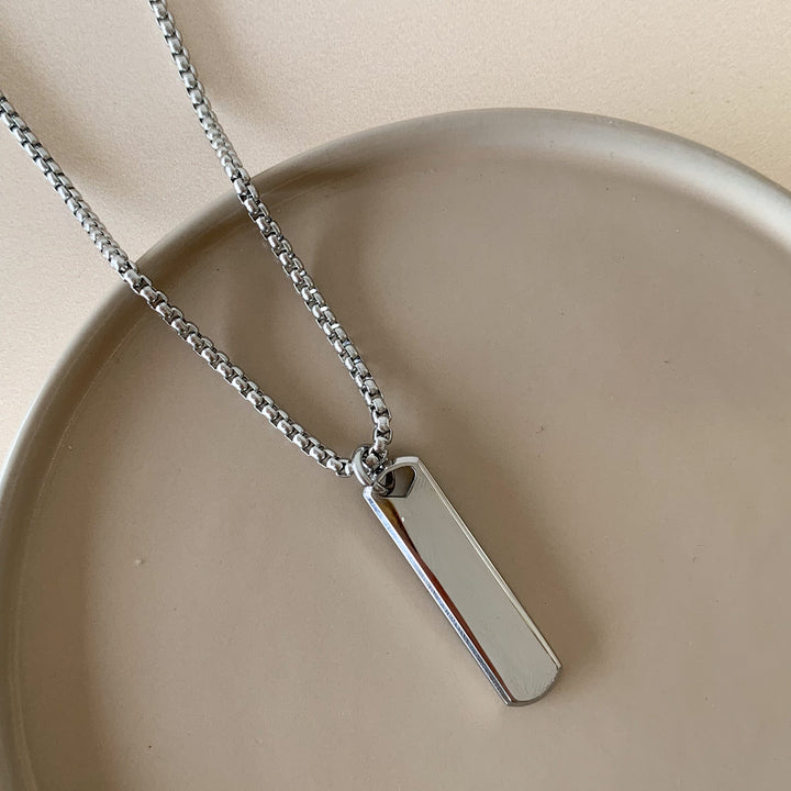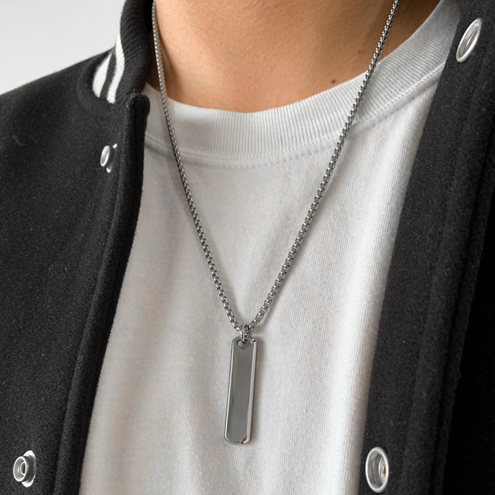 Collar plateado placa rectangular negra