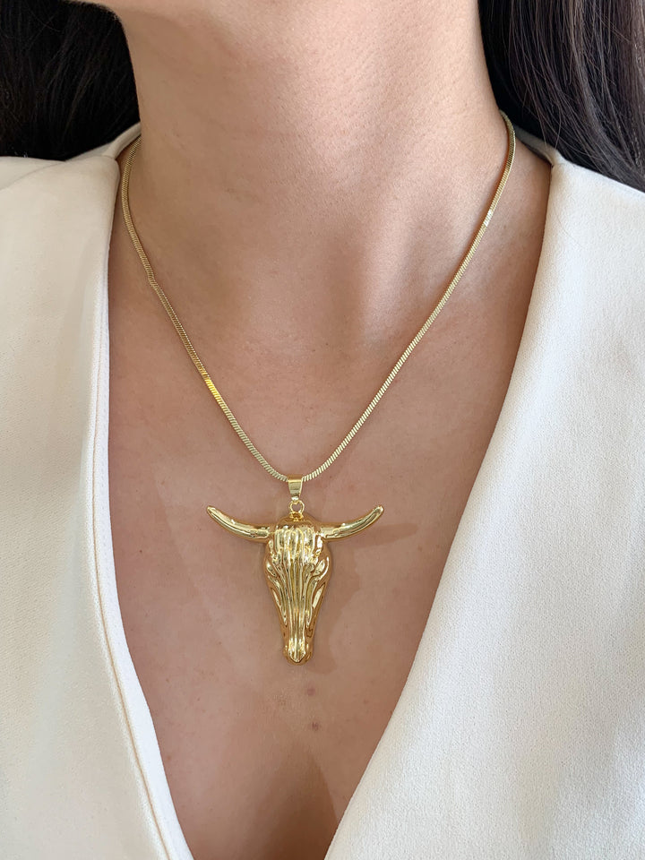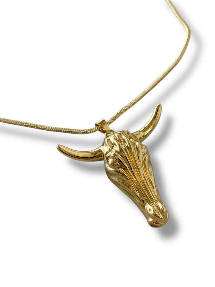 El poder del dorado se manifiesta en este collar maxi 🐂✨ El dije de toro con acabado brillante es el protagonista, perfecto para quienes aman los accesorios con fuerza simbólica y mucho estilo