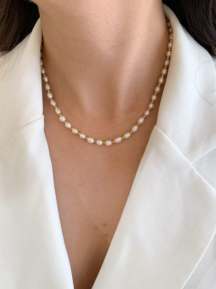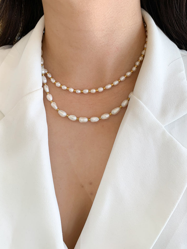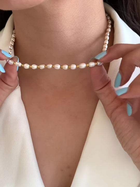 Un clásico que nunca falla 🤍 Esta gargantilla de perlas con forma natural se ve increíble con looks casuales o elegantes. ¡Un must en tu joyero!✨