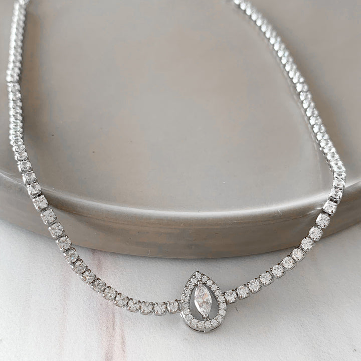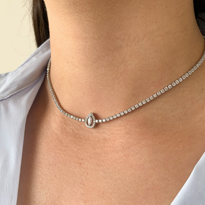 Una gargantilla que se roba todas las miradas. La combinación de brillos y el toque de la gota al centro hacen de esta joya una pieza para cuando quieres verte wow 💎💧