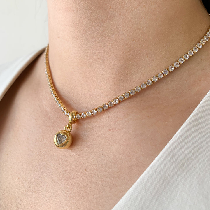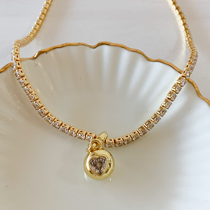 Todo lo que una joyita romántica debe tener: brillos, delicadeza y un corazón dorado al centro. Perfecta para usar en citas, eventos o cuando quieras sentirte divina 💖
