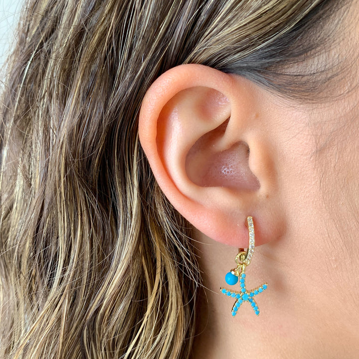 Sí a lo tropical chic. Las estrellitas y piedritas azules son un mini escape al mar, directo en tus orejas. Vacaciones en cada look. 🌊🌟