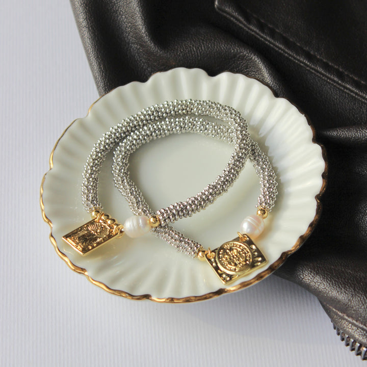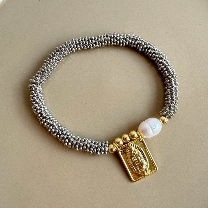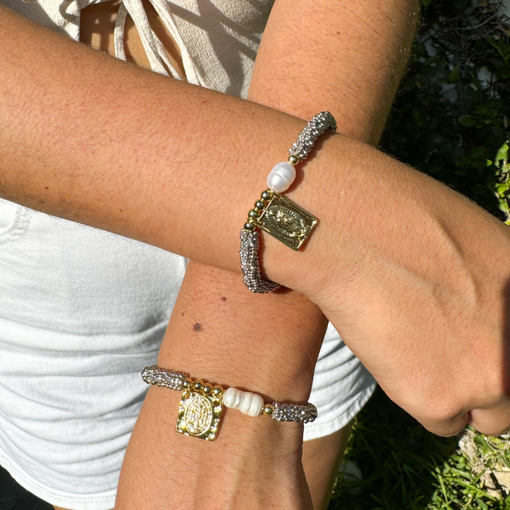 Fe, color y estilo en conjunto 🙏. Mezcla bicolor + medalla de la Virgen. Ideal si buscas algo simbólico y bonito para usar diario.