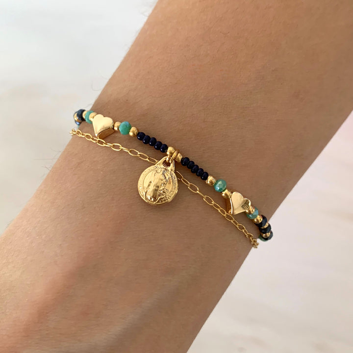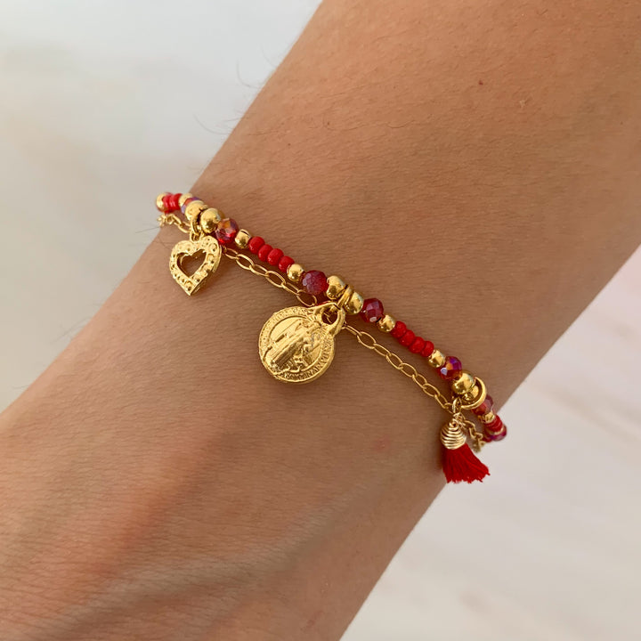 Color y protección en una misma pulsera 🌈🔱. Con cuentas mini de colores + cadenita dorada + medalla de San Benito. Súper combinable, moderna y con mucho significado.