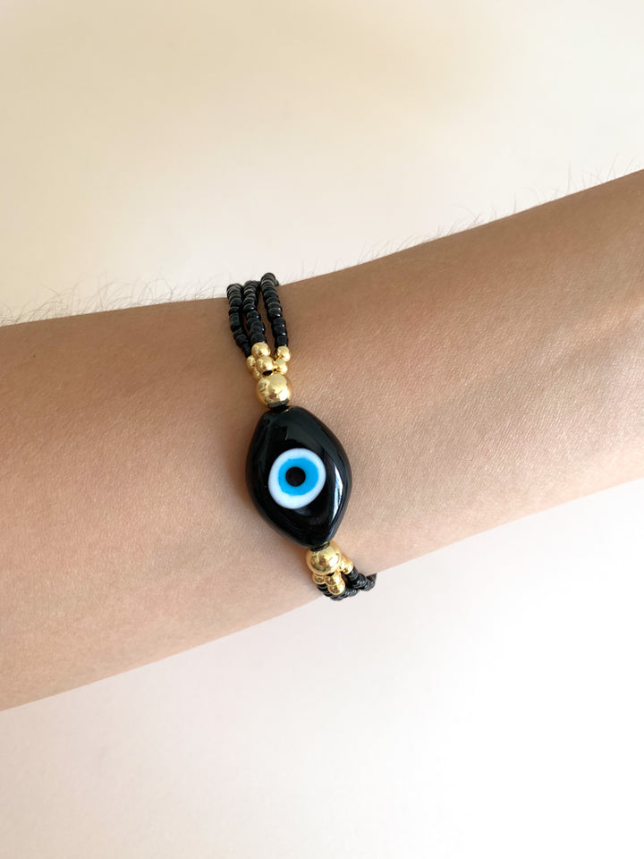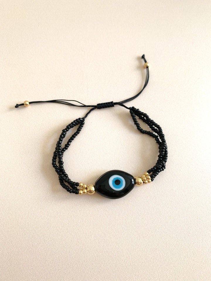 👁️Con cuentas negras + detalle central, esta pulsera es “darker mood” pero con glam. Perfecta si te gusta destacar sin exagerar.
