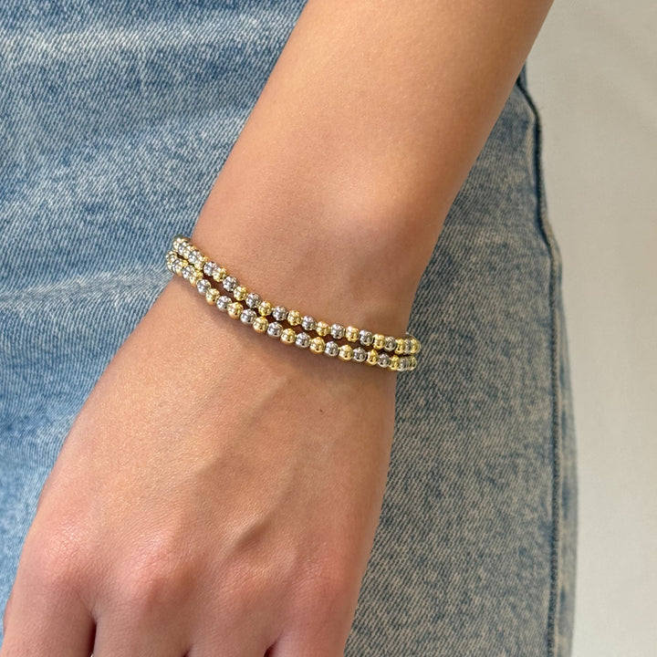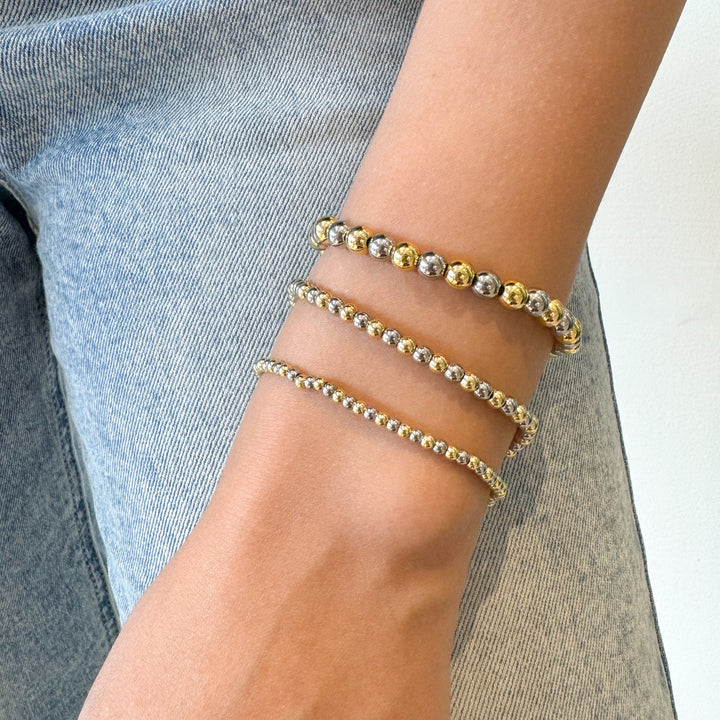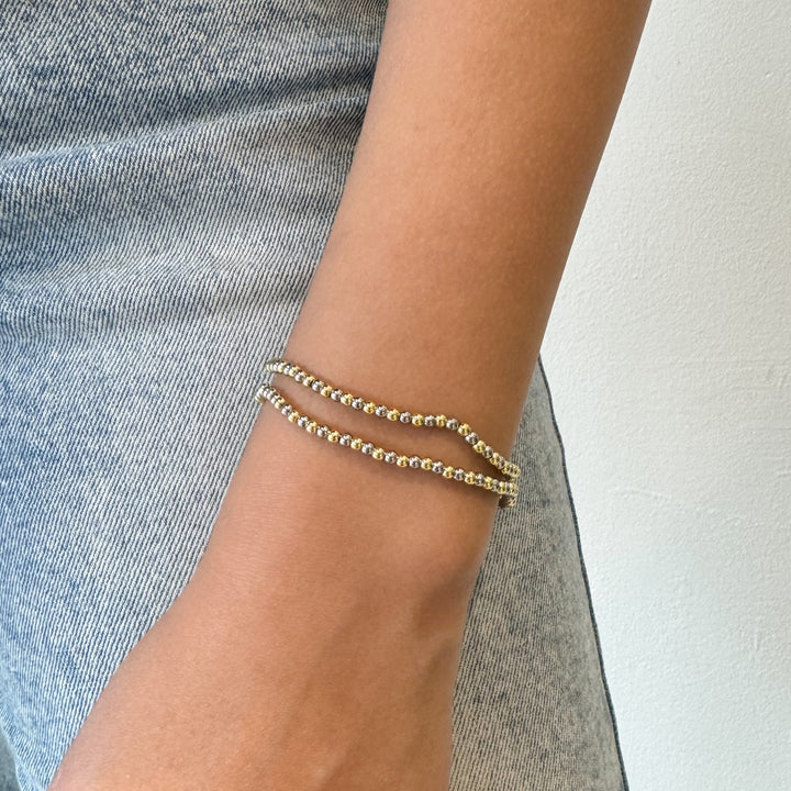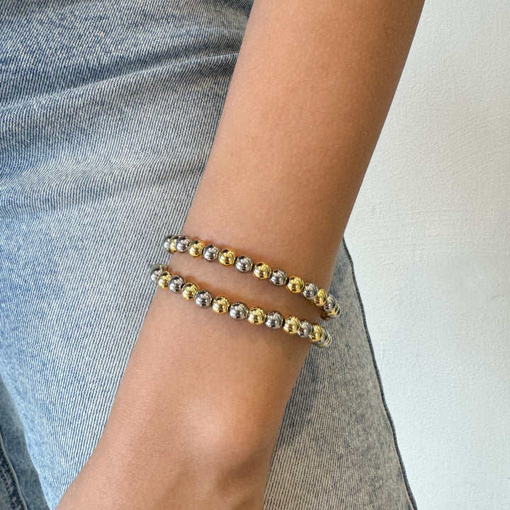 Dos tonos, doble estilo 🌟. Una pulsera con cuentas doradas y plateadas que combina con absolutamente todo. Un básico atemporal para tu colección.