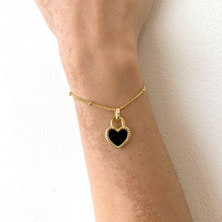 Dije de corazón negro con textura perlada y contorno dorado, ideal para expresar amor propio o regalar a alguien especial. Una pieza con mucho simbolismo. 🖤
