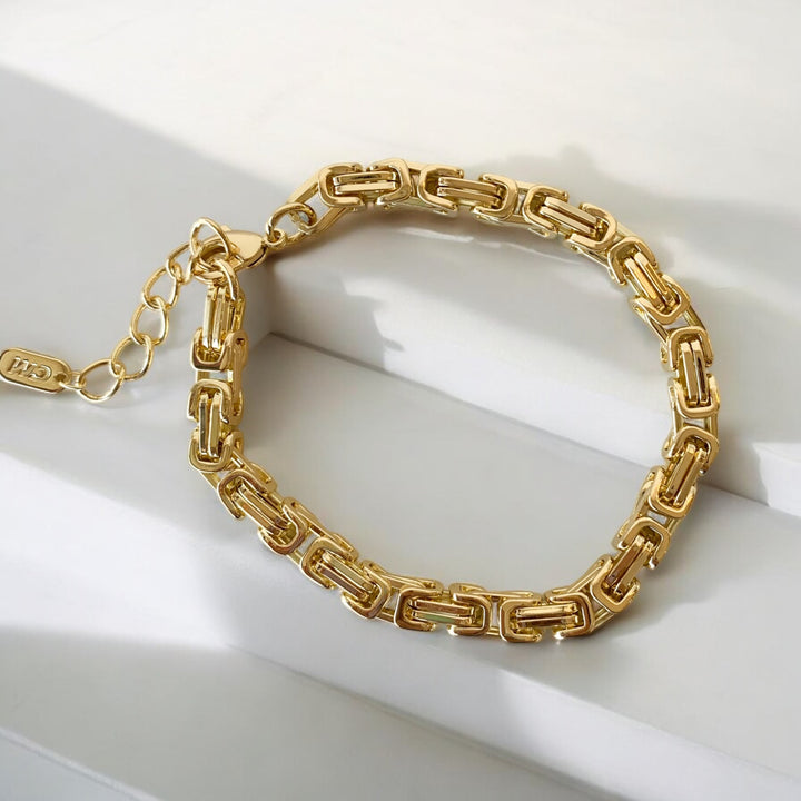 Diseño firme y sofisticado 🔗. Esta pulsera de eslabones compactos y textura brillante es ideal para quienes aman lo estructurado sin perder el estilo💕