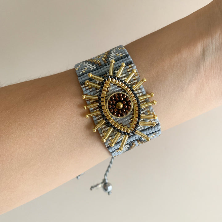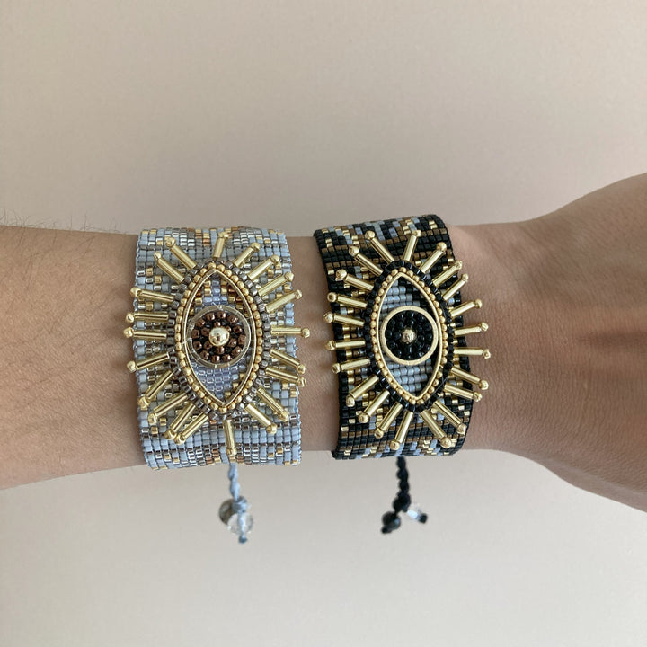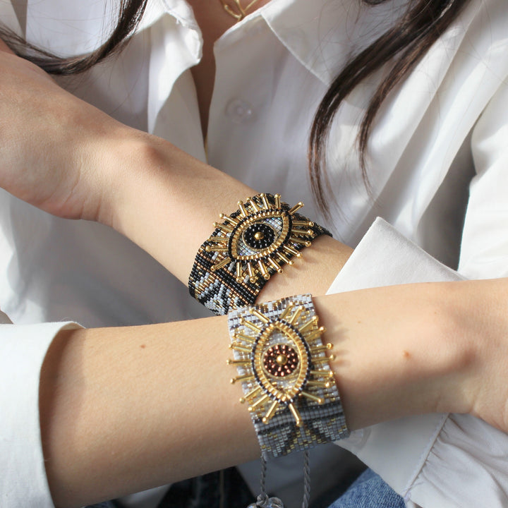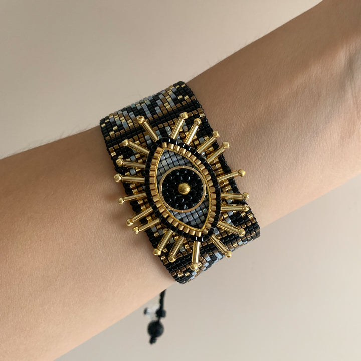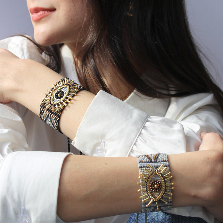 Un diseño que roba miradas 😍. Con bordado de ojo en el centro y detalles simétricos en cuentas, esta pieza se siente única, artística y poderosa. Si amas lo diferente, esta es para ti.