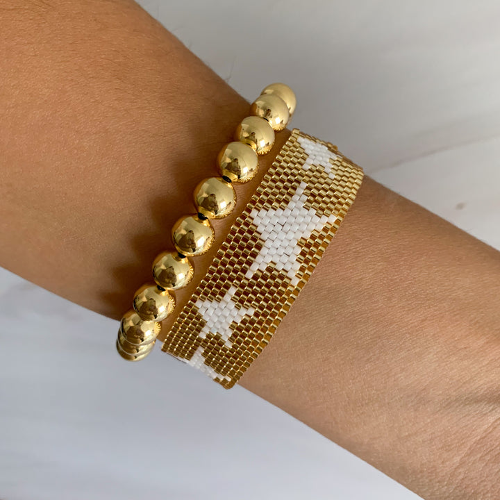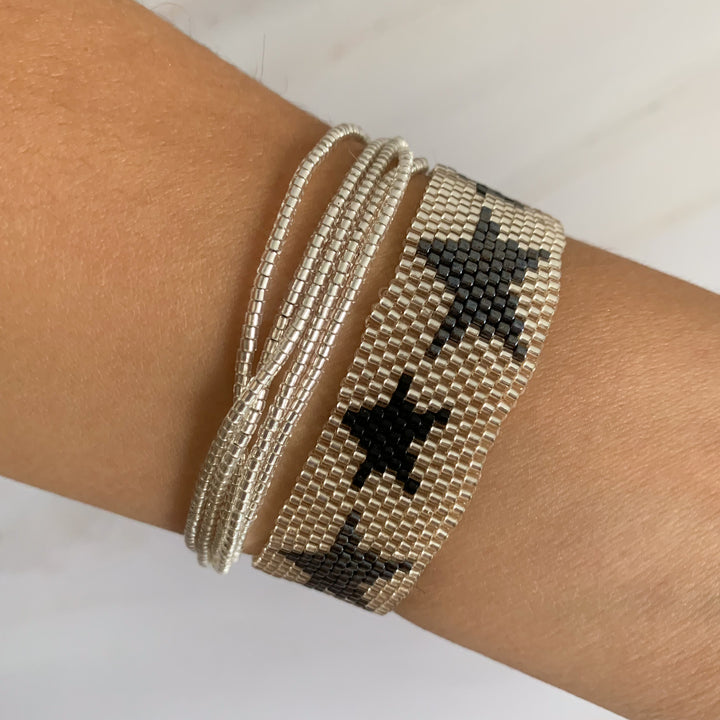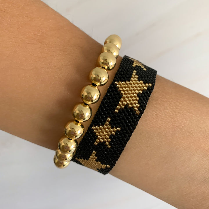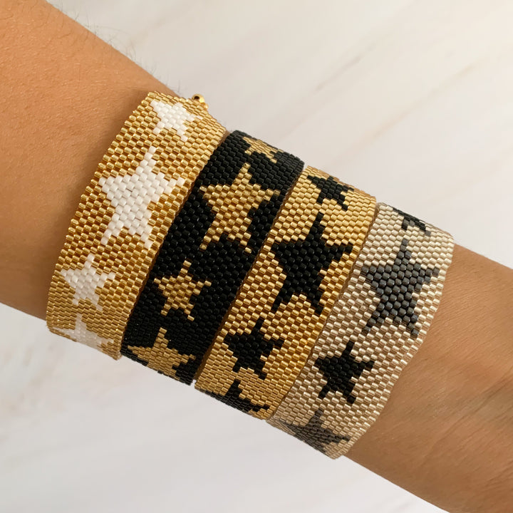 Estrellas que brillan en tu muñeca ⭐️. Esta pulsera tejida de estrellas es para quienes aman destacar. Con opciones en dorado, negro y contrastes chic, es perfecta para darle vida a tus looks básicos o elevar tu outfit de noche.