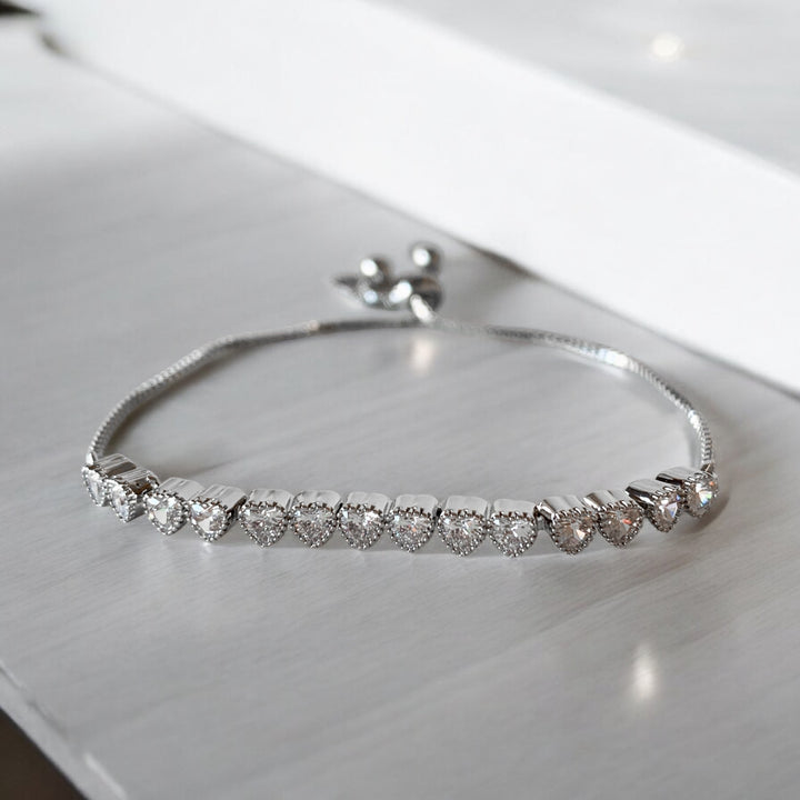 Cada brillo en forma de corazón refleja el amor en cada detalle 🤍. Una versión romántica y luminosa del clásico diseño tennis. Ideal para regalar(te) 💕