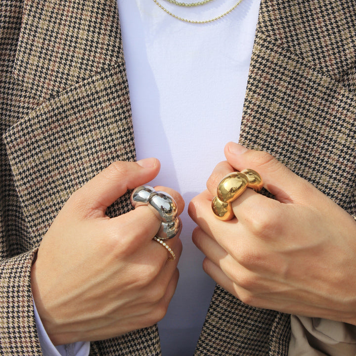 Grande, dorado y con forma de flor 🌼 Este diseño es perfecto para quienes aman lo llamativo con un toque femenino. Su volumen lo vuelve el centro de atención inmediato