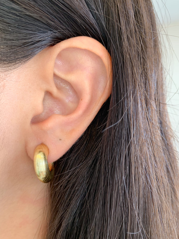 Sutil pero con carácter 🌙 Estas semiarcadas de tamaño pequeño tienen una textura estriada que les da profundidad y brillo. Son una opción versátil que combina con todo, desde jeans hasta vestidos más formales